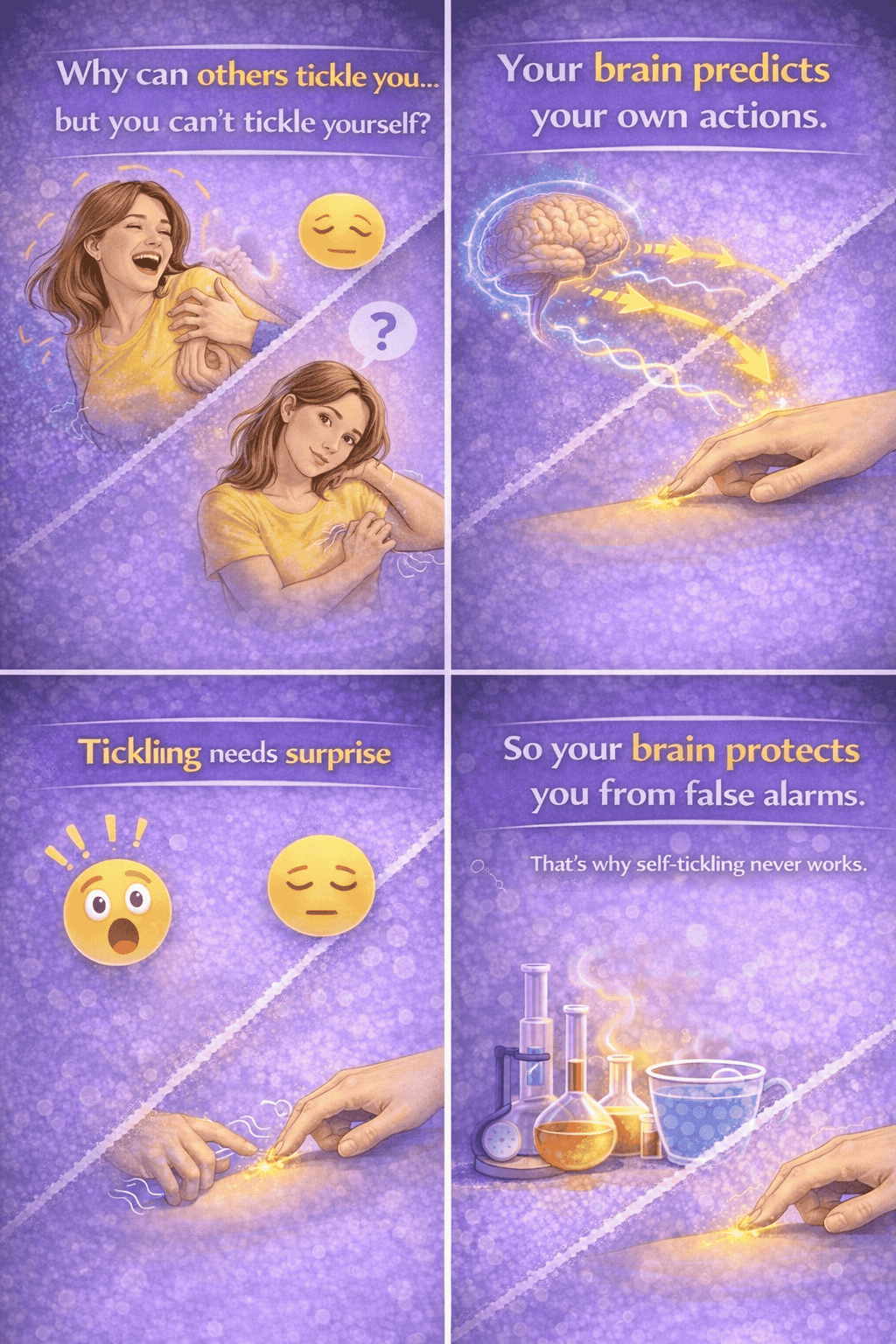 Tickling works because your brain is caught off guard by an unexpected touch.