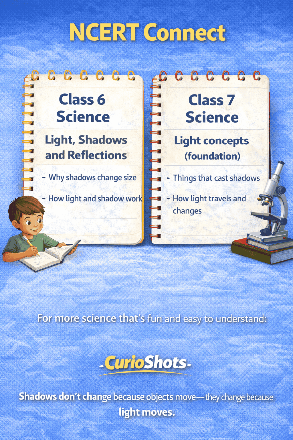 This idea comes from Class 6 Science – Light, Shadows and Reflections. It also helps you understand basic light concepts in Class 7.